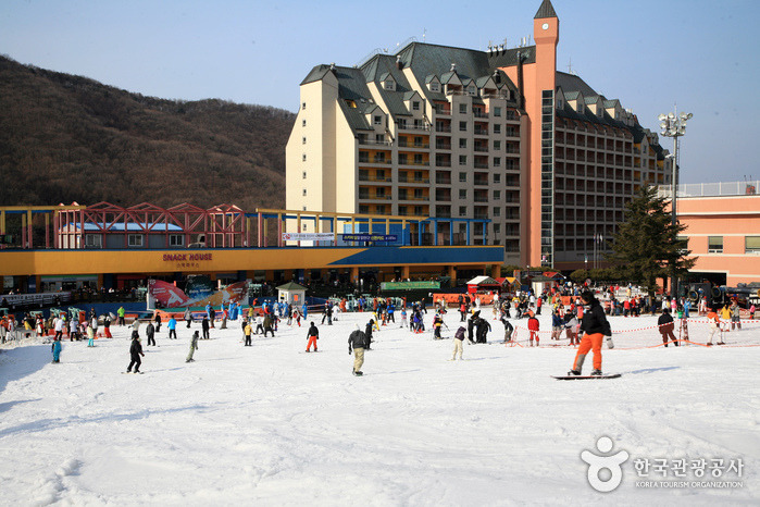 스키장 코스 가운데 특히 아베크 코스는 고급 기술을 구사할 수 있는 아름다운 코스로 스키 마니아들이 많이 찾는 곳이다. 스키를 즐기면서 이용할 수 있는 전망대 휴게소와 유아들을 위한 놀이방과 눈썰매장이 있어 온 가족과 함께 건전한 여가를 즐기시기에 좋다. 눈썰매장은 스낵하우스 뒷편 전용 슬로프로 운영되고 있으며 길이 150m, 폭 20m이며 16명이 동시에 출발할 수 있으며 초보자전용 리프트인 썬키드 리프트를 설치하여 보다 많은 시간동안 편리하게 이용이 가능하다.