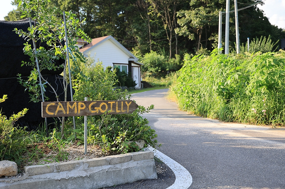 포천 아도니스 골프장 인근에 위치한 캠프고일리는 단독 펜션 겸 캠핑장으로, 캠퍼들이 원하는 바를 구현한 감성 넘치는 곳이다. 잔디위에 조성된 사이트 4개와 독채 펜션, 산장을 함께 이용할 수 있는 프라이빗 야영장이다. 때문에 소규모의 그룹 캠핑이나 펜션과 캠핑을 함께 즐기려는 경우에 적합하다. 또한 사장님이 직접 운영하는 앤티크 한 캠핑 소품이 가득한 매력적인 바가 있다. 캠핑장은 널찍한 잔디밭으로 되어 있고, 단독으로 이용할 수 있어 반려견 동반도 가능하다. 봄이면 만개하는 산수유나무들과 여름과 가을이면 나무 울창한 산책로까지 갖추고 있는 운치 있는 캠핑장이다.