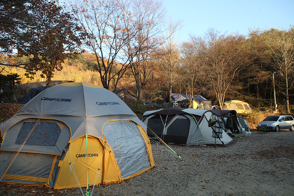 캠핑 사이트는 20개 정도의 파쇄석으로 물 빠짐이 좋다.